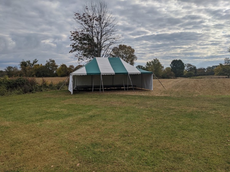 20x30 Pole Tent. Can seat 6 tables and up to 54 Chairs! Colors may vary, if you want a specific Color please add a note in the event notes on your quote/invoice