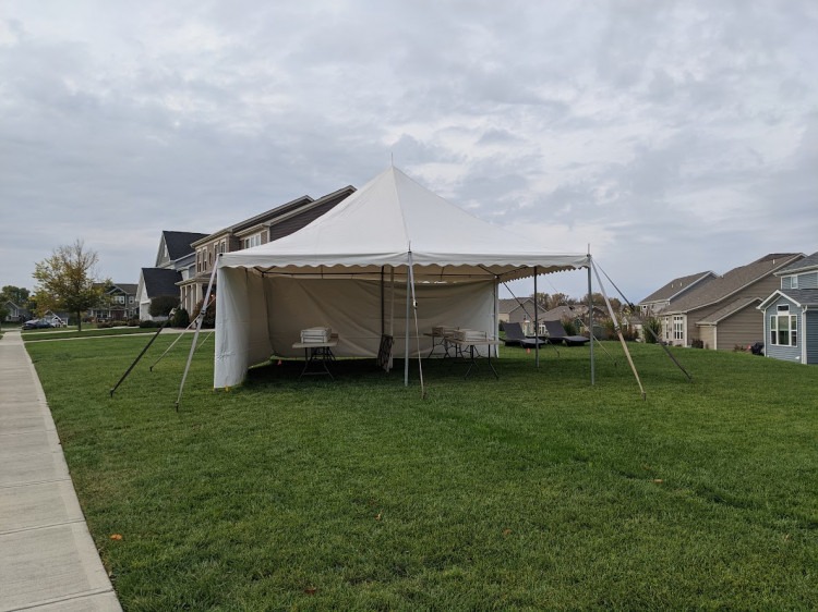20x20 Pole Tent. Room for 4 tables and 32 chairs.
